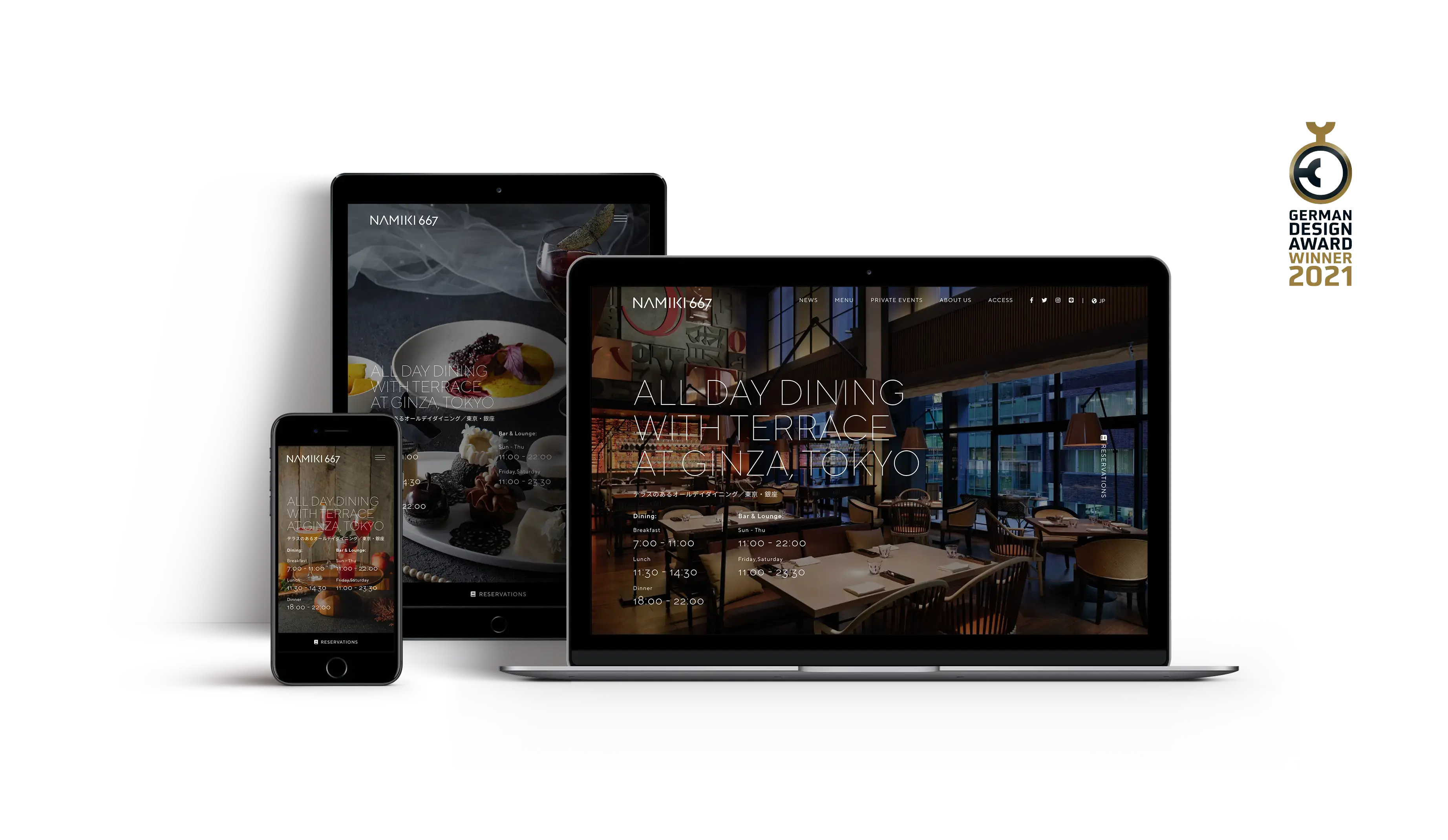 東京/銀座並木通り 6-6-7に位置する、ハイアット セントリック 銀座 東京のレストラン、NAMIKI667のWebサイト。 洗練された写真を大胆に使用し、ロゴに合わせたミニマルな書体を選定、モダンなデザインに仕上げました。 CMSをカスタム設計し、更新性とWebサイトの価値を高めています。