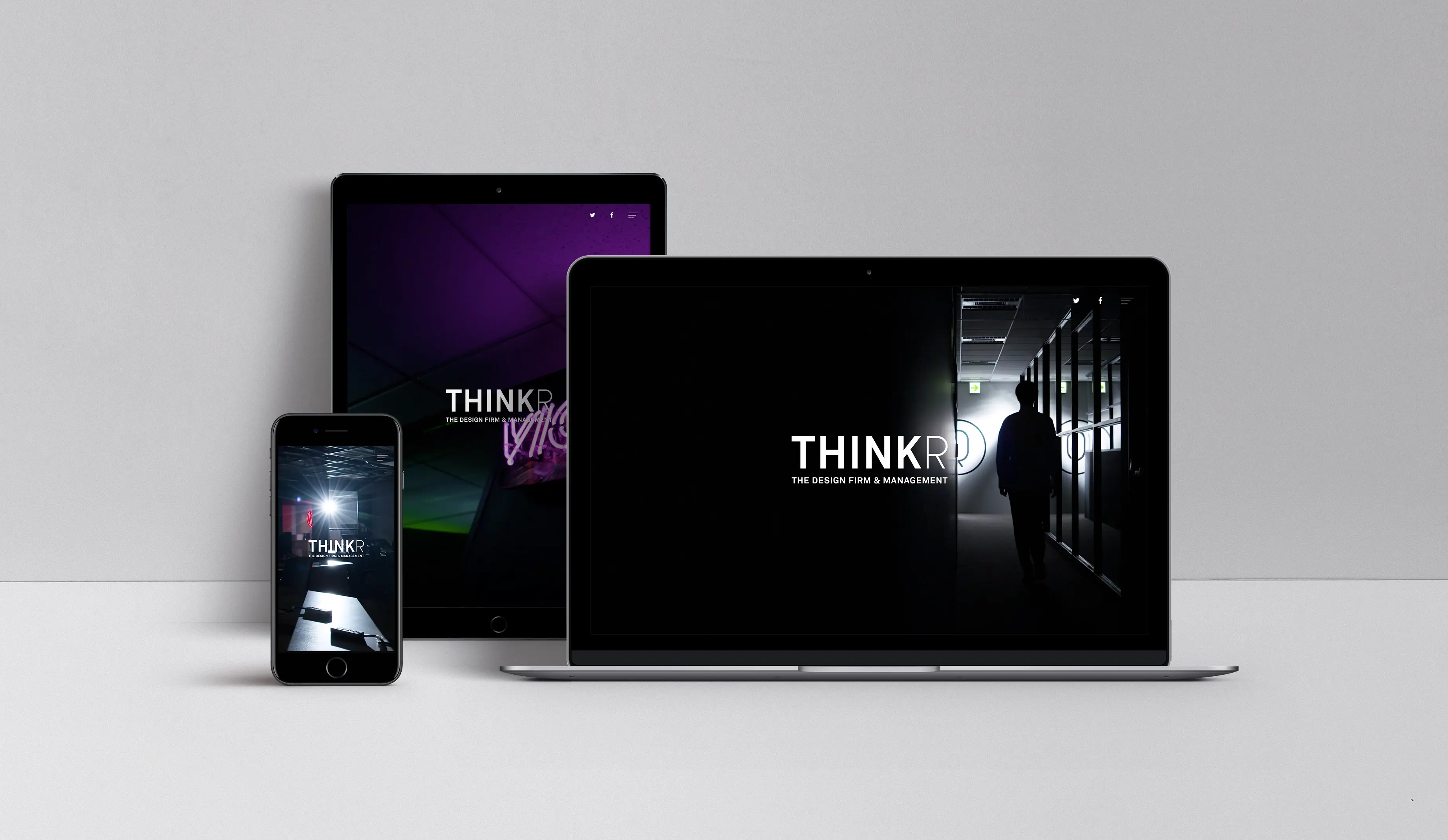 デザインファーム/THINKR様のWebサイト制作。写真+タイポグラフィーのディテールを詰めてデザインさせていただきました。