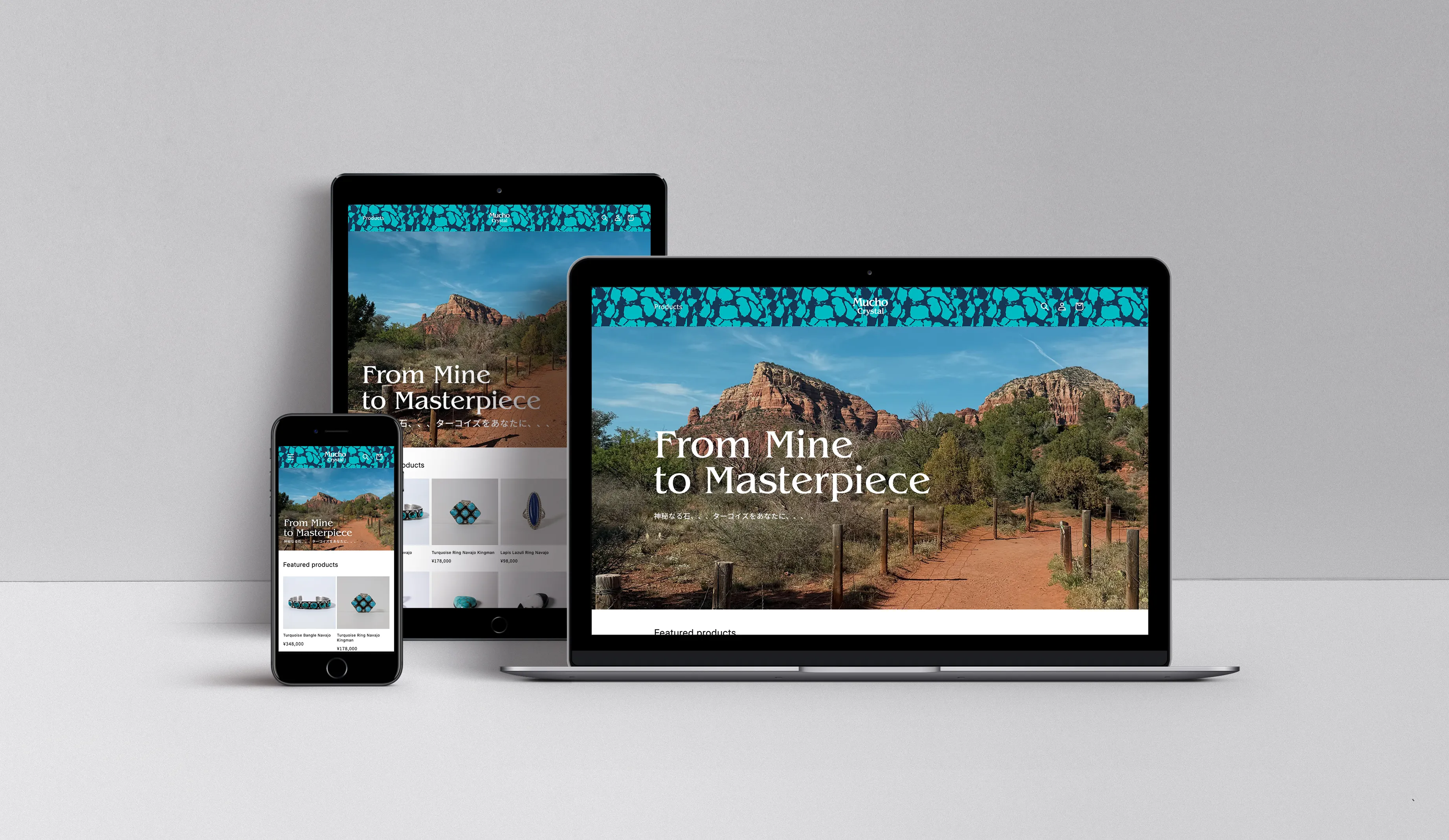アリゾナ州などのアメリカから買い付けたターコイズを使用したジュエリーのブランド。写真を大切にしながら、モーションを加えたWebサイトを制作しました。